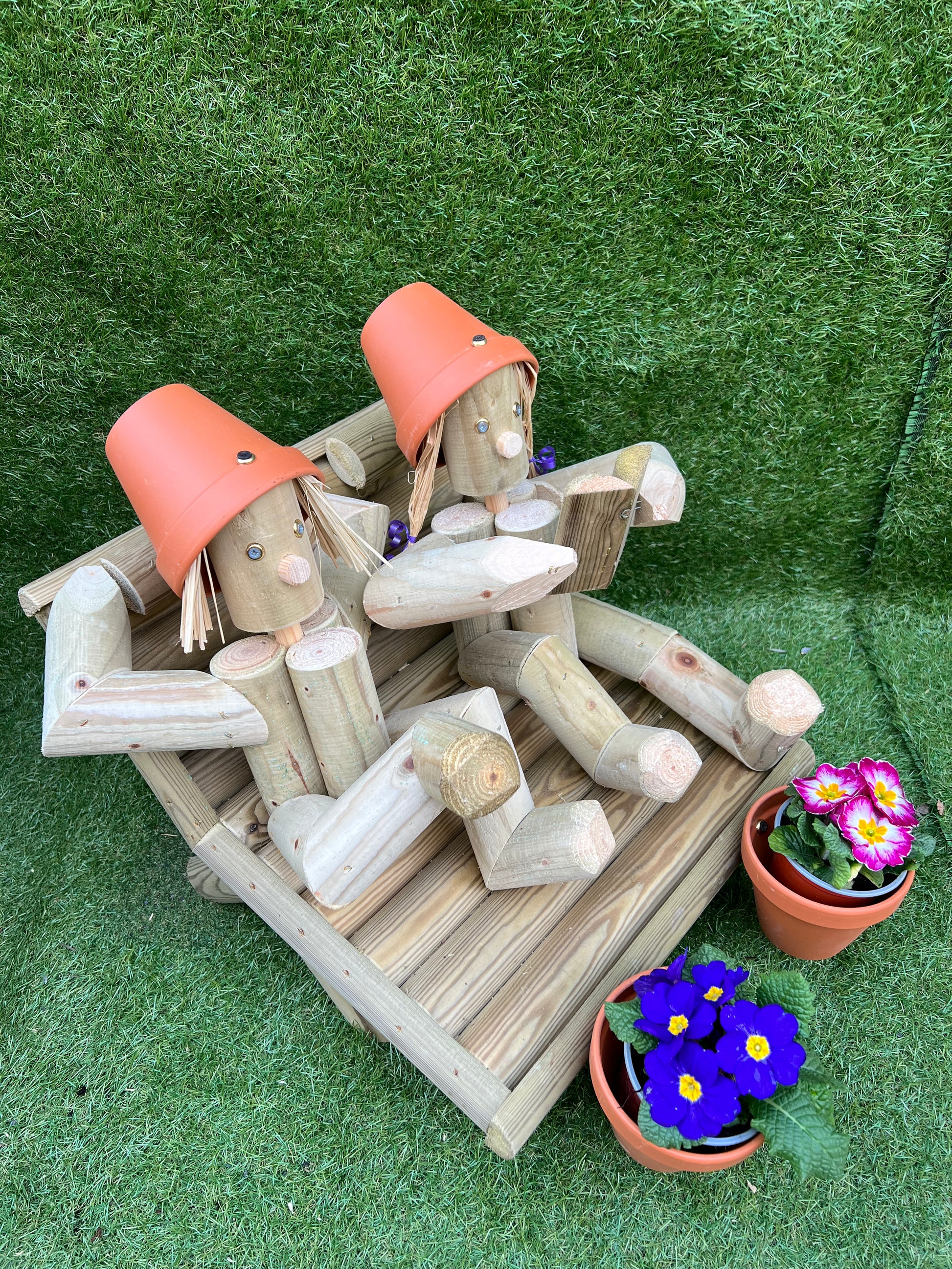 This is our Twosome lazing on a Sun lounger, the Girl is reading a book and the Boy has one leg crossed over his knee. Best part is the little glasses the man is wearing; which you can purchase separately from us as well.