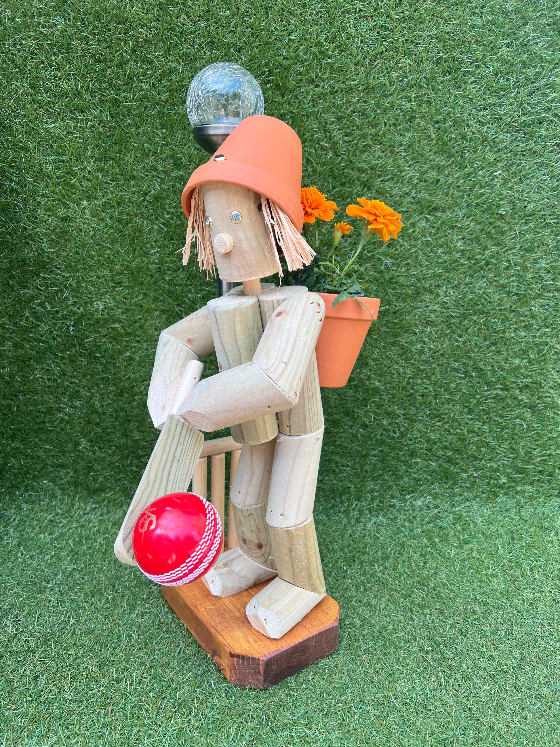 Boy standing on wooden plinth with a solar light & cricket bat and a real cricket ball.Solar Light charges all day long and gives you nice Light at night!
